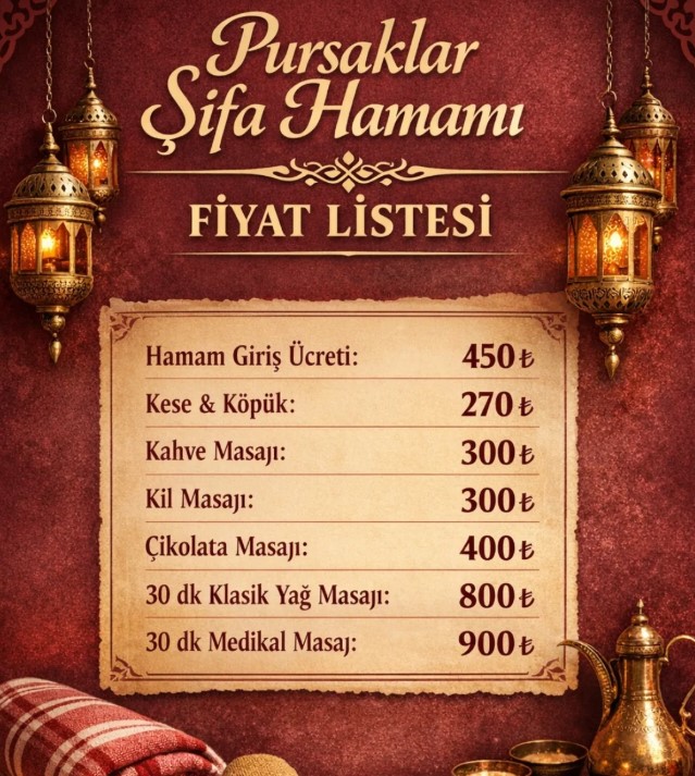 Pursaklar Şifa Hamamı Ocak 2026’da açıkladığı fiyatları sizlerle paylaşıyoruz.